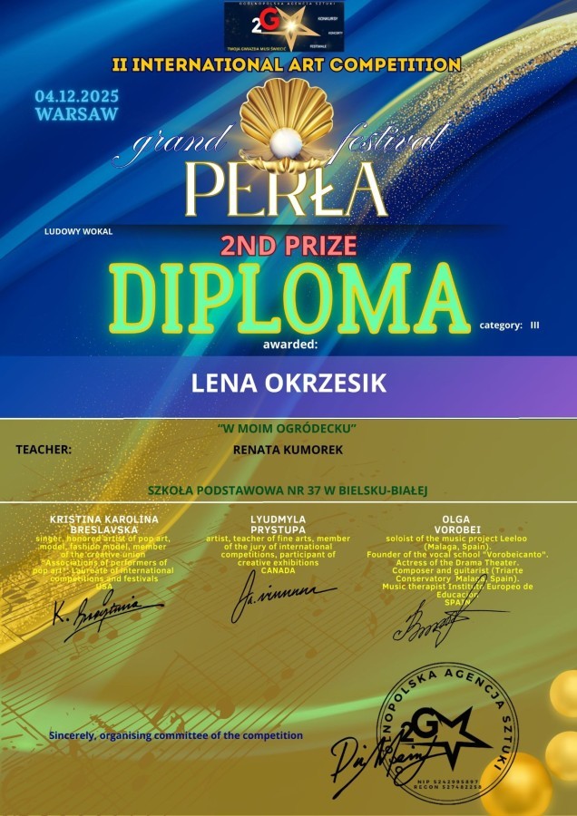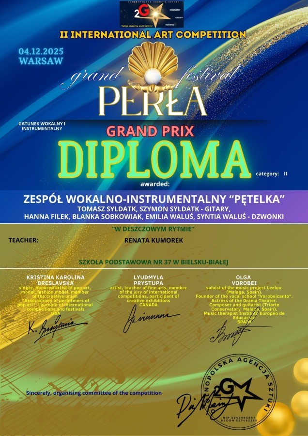 Zespół wokalno-instrumentalny Pętelka oraz solistka Lena Okrzesik ze Szkoły Podstawowej nr 37 wzięli udział w dwóch festiwalach online: międzynarodowym II International Art Competition Grand Festival Perła gdzie Lena zajęła II miejsce a zespół zdobył Grand Prix oraz w Ogólnopolskim Festiwalu Polska Nuta gdzie zarówno Lena jak i zespół zdobyli wyróżnienie specjalne.