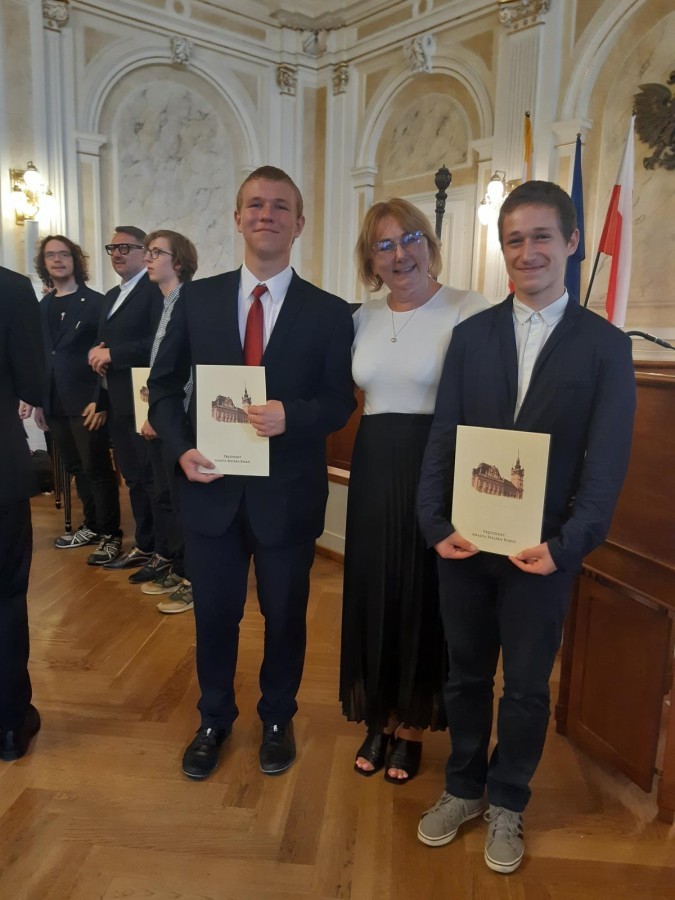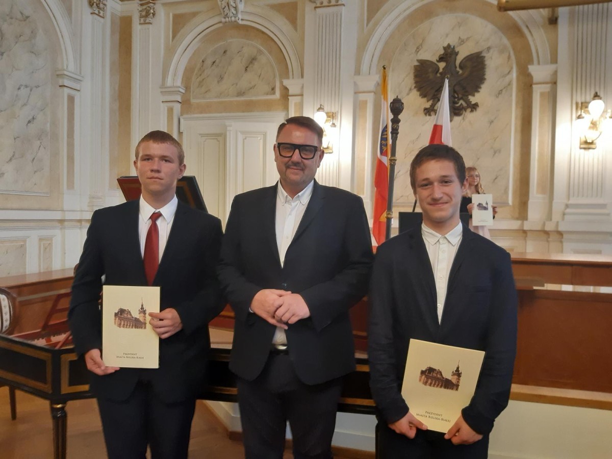 W dniu 3 września w Sali Sesyjnej Urzędu Miasta w Bielsku – Białej stypendia wręczył uczniom Prezydent Miasta Bielska-Białej Jarosław Klimaszewski, który wraz z przewodniczącą Rady Miejskiej Bielska-Białej, Panią Dorotą Piegzik-Izydorczyk oraz Panią Agnieszką Hermą – Naczelnikiem Wydziału Edukacji i Sportu w Bielsku-Białej złożyli gratulacje i podziękowania za pracę i zaangażowanie.